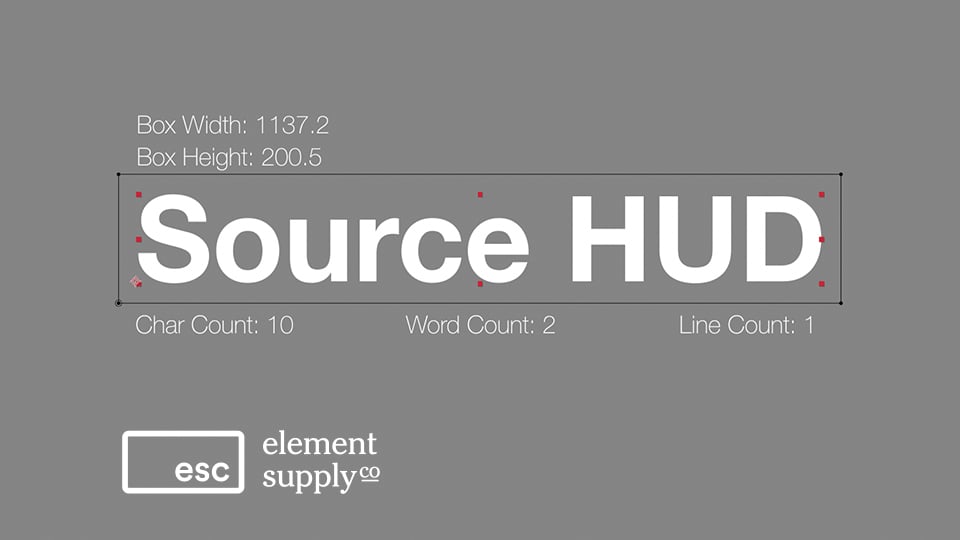 Source HUD is your heads up display for information that After Effects doesn't show you. Get the layer width and height, and absolute position of each corner—even when you scale and rotate! This also works in 3D. For text layers, you have more info, like character count, word count, and line count.